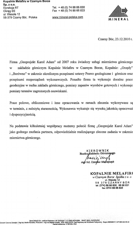 Od prawie 30 lat pomagamy Górnikom, Projektantom i Inwestorom Indywidualnym. Doskonałą jakość naszych usług potwierdzają liczne rekomendacje od renomowanych firm.
